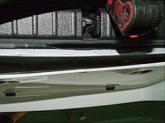 | また別の所から、ビビり音がしている。後部座席より後ろで上方から、ビー と振動する音が聞こえる。 シェルフ パネル辺りか ? と思い、叩いて見るが違う。( シェルフ パネルは、対策済