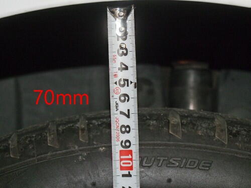 ホイールアーチとタイヤ上面の差が、下。 ダンパーが正常となった事で、車高が15mm上った。