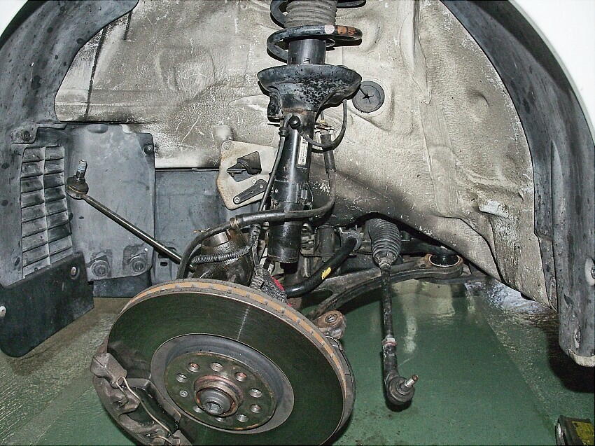 これを、ホイールベアリング ハウジングに入れ込むのだが、これが厄介な作業。親指の関節に、モロ ダメージを受ける。 この、ホイールベアリング ハウジングにストラットを入れ込む方式は、いつも思うのだが最悪だね。