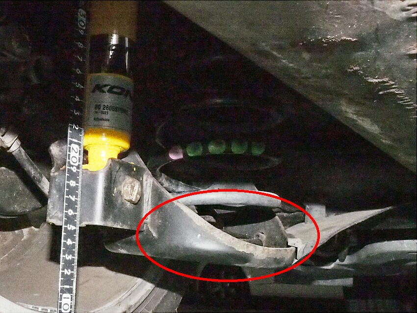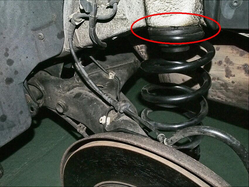 トーションビーム方式は、狂いが生じやすいので、これは仕方が無い。残り7mmは何処から来ているのか。 まず見たのが、アッパーの支持ゴム部。 左は右に比べて、1〜2mm程痩せている様に見える。