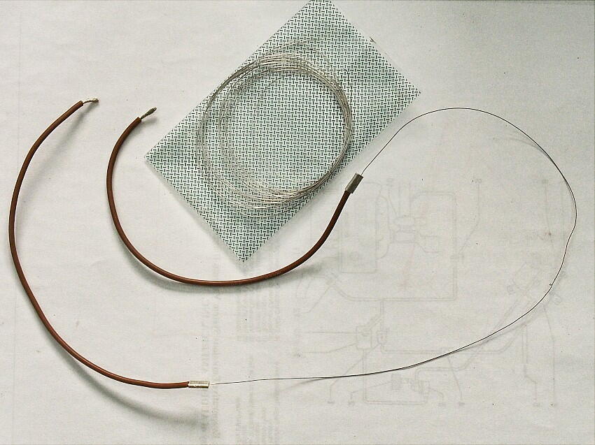 ニクロム線と被覆線を、圧着端子で結合。被覆線は、手で持つ為の物。 ニクロム線を切断する所の背後に回して