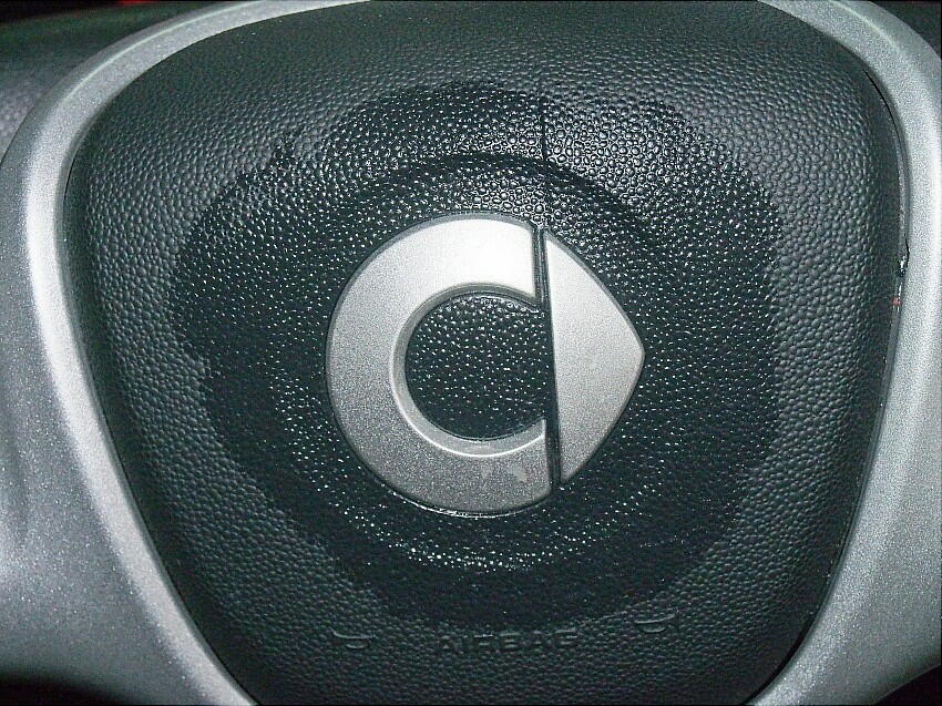 貼り付けて終了。 外周のリング部は、ステアリングの窪み内には収まらず、はみ出ている。と、言う事は