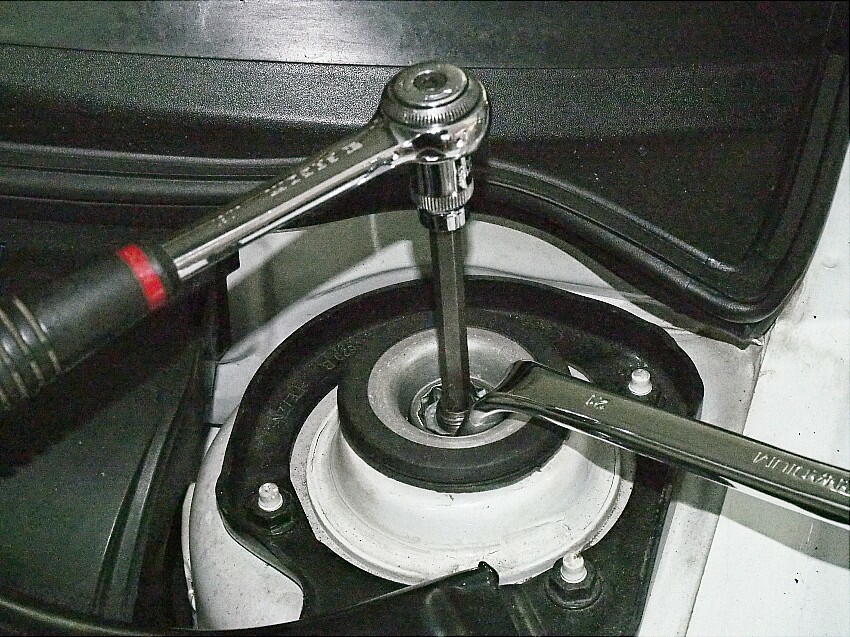 | フロント左 ドラシャブーツの交換で、ハブ アッセンブリを外した時、サスペンション本体がガタ付いている事に気付いた。 ガタ付きは、下から押し上げると5mm程度。まさか、アッパー マウンティング ナットが緩んでいるのか ? と、思い 即座にチェックした。 結果は、両輪共に緩みは無かった。