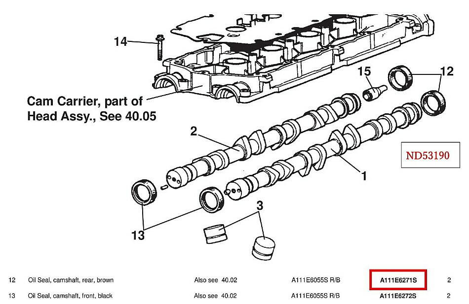 直列4気筒の点火順序は、 1 3 4 2 なので、 反時計回りに、カムシャフトは回転している事になるが、そうなると 上記写真の、右側がリア側のオイルシールとなる。 部品表で示された茶色のシールと一致する。