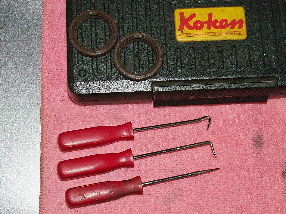 現オイルシールを外そうと、リムーバーを使うが ........ 外れない ! これは、プラーを使わないと駄目か ? それとも、破壊して取り外すしかないのかね。 ちょっと、悩んでみよう ( 笑